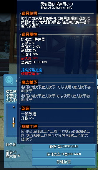 強弓手 [ Lv.127 ] ? 2013-07-09 16:20:19 恩..... 因為有改造阿.... 像你這把這樣改..修理的倍率可能是原價的"50"倍.... *不懂自己去武器改造模擬器看看... |