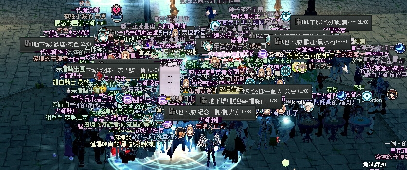感謝接受邀請的各大公會『1.夜色,2.傾聽,3.春秋,4.星光軌跡,5.紗月星鈴,6.森羅萬象,7.幸福旋律,8.進擊的雞腿,9.赤盾騎士團,10.黑心祝水商,11.一個人的公會,12.後來亂入的各大公會www』,照顧不周盡請原諒...