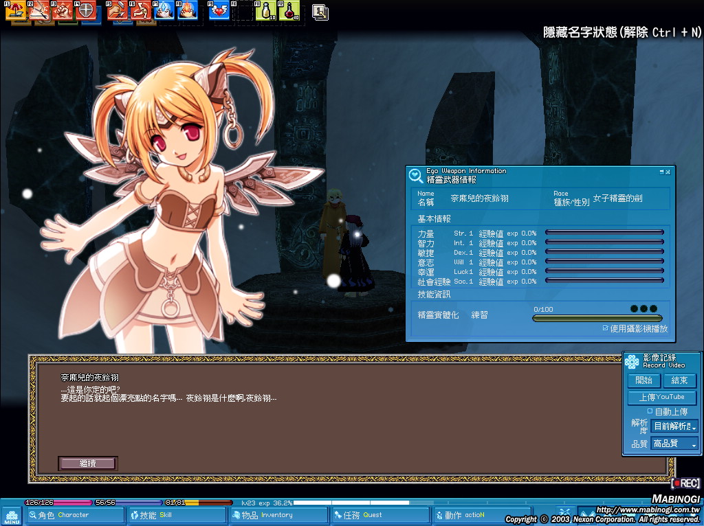 由比拿 [ Lv.94 ] ? 2012-12-26 23:23:29 忽然好想我以前的精武.....T^T 叫艾晞, 是男劍耶(淚眼 |