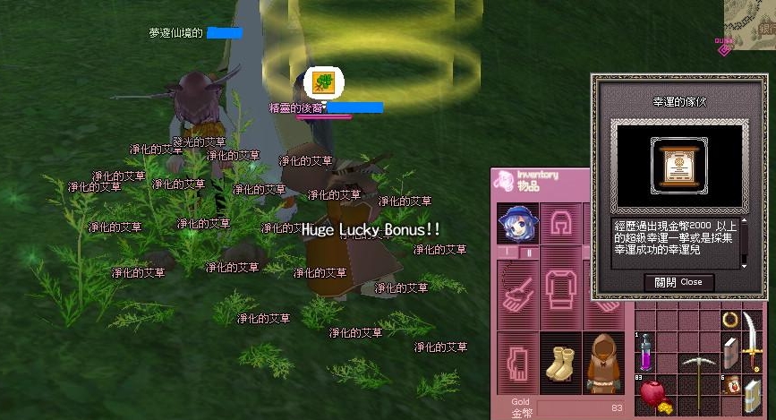米修米修 [ Lv.129 ] ? 2011-07-28 11:06:14 艾草爆過好幾次了` 弄個盜賊裝 把幸運撐高 只爆lucky bouns都能追上huge lucky 狂lucky bouns的米 ((被揍飛 |