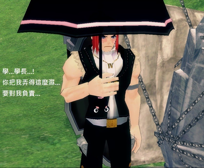 學弟...你這樣淋雨,身體會濕掉哦 (遞傘)