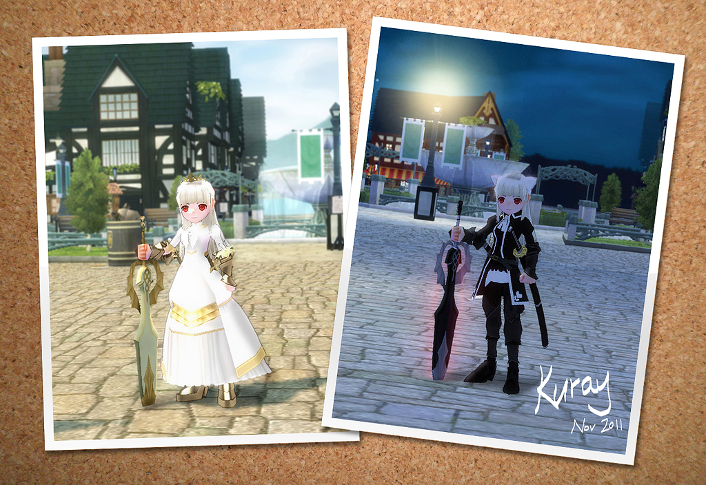 Kuraykaree [ Lv.45 ] ? 2011-11-29 15:41:01 =) 白: 可愛公主服+德斯丁手+迪歐斯靴子 黑: 海盜外套+德斯丁手+哥德禮服護靴 |