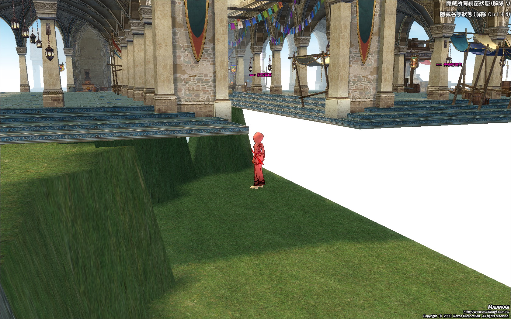 a1a121 [ Lv.89 ] ? 2011-12-20 20:58:45 當時地板變成這樣時,用滑鼠走路會點不到空的地方,用鍵盤走路地板有時候會恢復,換分流也一樣。隔天再登入後就正常了~ |