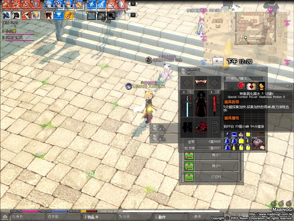 哎呀 [ Lv.53 ] ? 2012-01-29 18:36:50 有兩種,一種是特製弱化藥水 S 另一種是特製弱化藥水 特製弱化藥水是弱化20分鐘 另一個我不知道 |